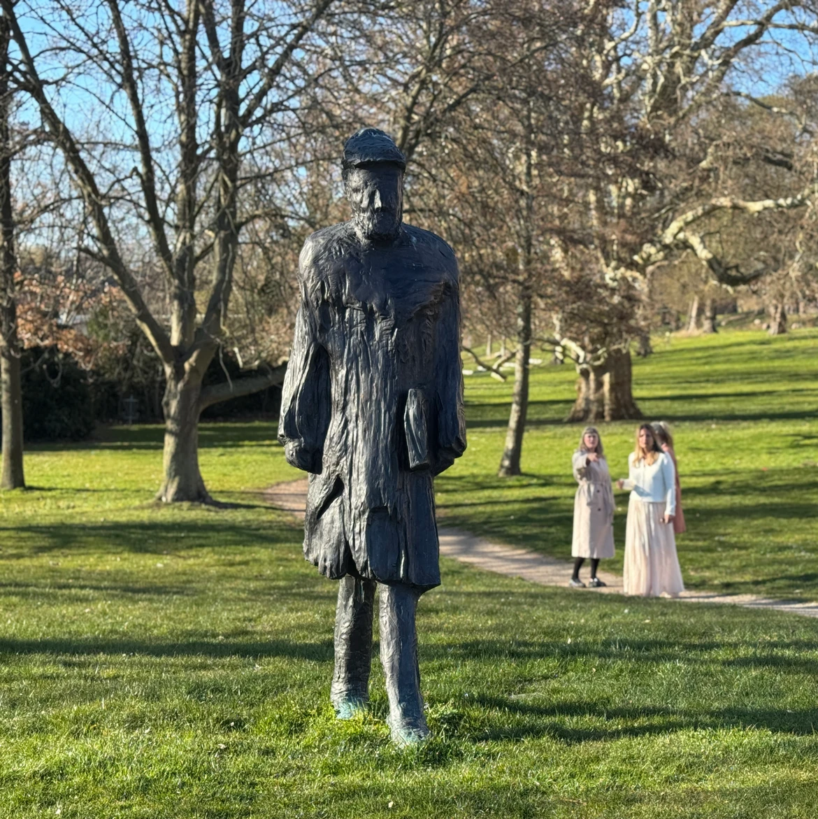 Skulpturen er placeret ved hjørnet af J. Hagemann-Petersens Allé og Klosterparkvej – tæt på Klostertorvet – et sted valgt for at forbinde Kalundborgs historiske bymidte med de grønne omgivelser, ligesom Lundbyes værker ofte forenede det naturtro med det nationale.