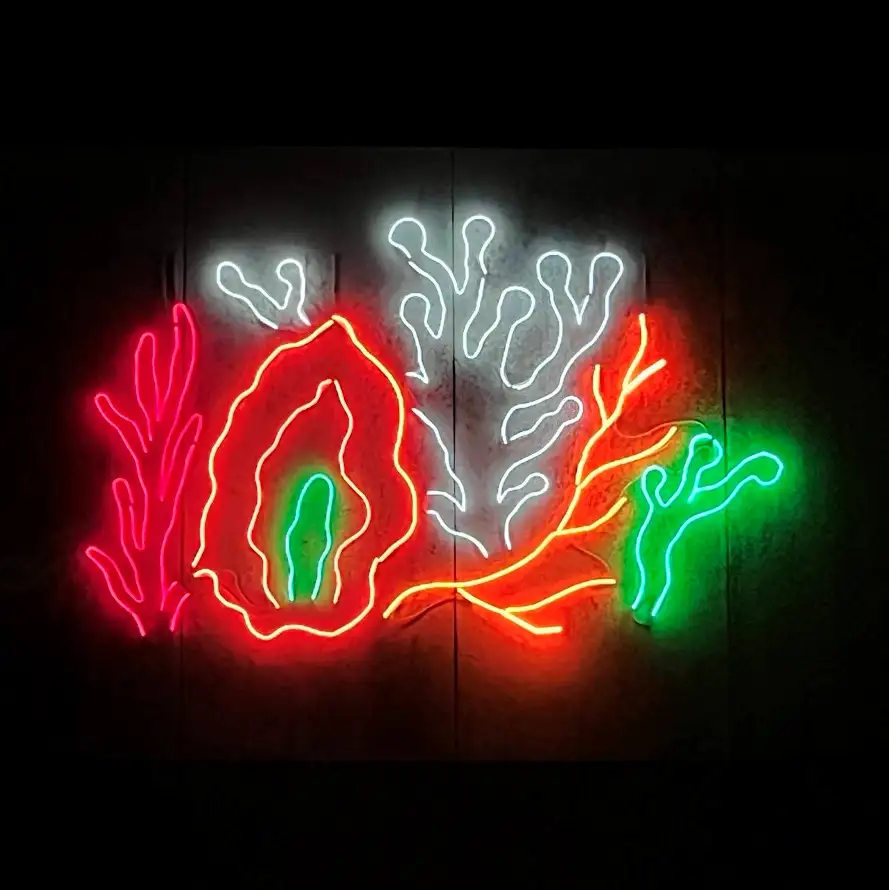 Silas Inoue (f. 1981). Lichen. Neon. 200 x 350 cm. 2023. Doneret af Ny Carlsbergfondet til Kalundborg Gymnasium og HF.