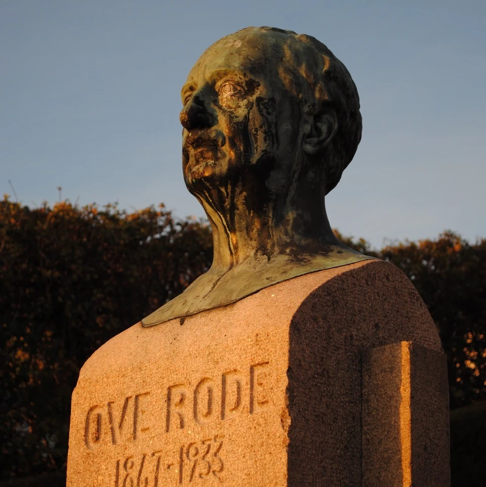 I 1935 gentog han busten i overnaturlig størrelse til opstilling i Kalundborg - Ove Rodes gamle valgkreds. Skulpturen blev i 1935 opstillet i Adelgade foran Vor Frue Kirke. Ved parterrets anlæggelse 1953 blev skulpturen flyttet til Møllebakketrappen. Den radikale politiker og redaktør Ove Rode var i mange år medlem af Folketinget, valgt i Kalundborgkredsen. I perioden 1913-20 var han indenrigsminister i C.Th. Zahles regering.