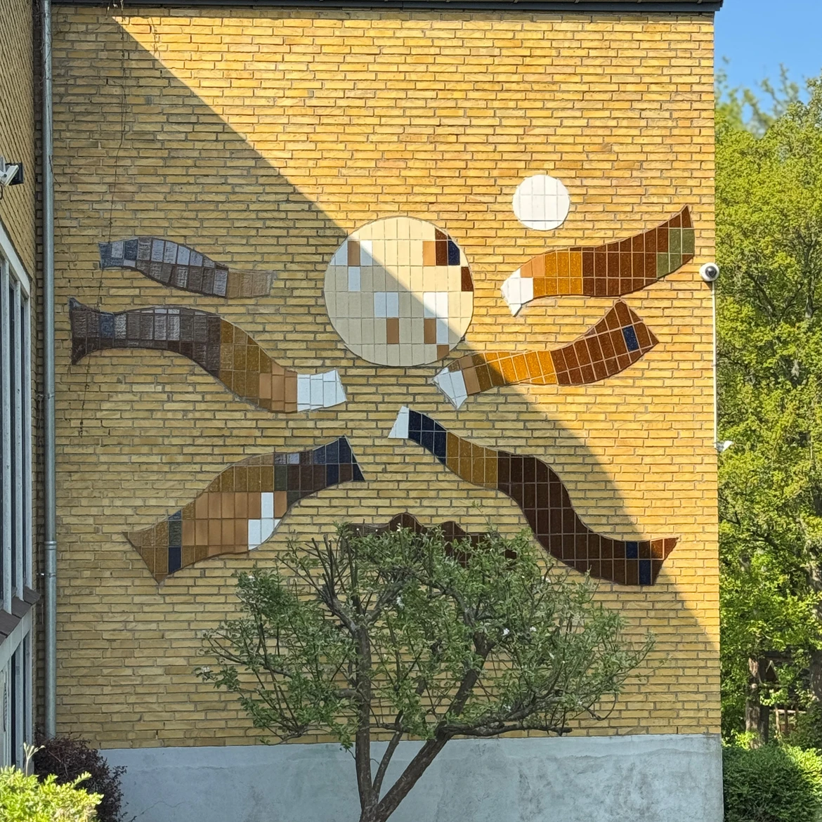 Maleren Jørgen Brynjolf (1931-93) blev i 1981 valgt til at udsmykke en gavl på Sigrid Undset Skolen på Fr. Andersensvej. Det resulterede i det store, keramiske relief Solen bryder frem.