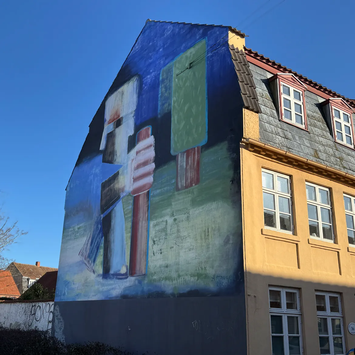 Skole- og Kulturudvalget i Kalundborg Kommune besluttede i 1999 at markere årtusindskiftet med et gavlmaleri. Kalundborg Kunstforening blev inddraget i valg af kunstner, og foreningen fik Arne Haugen Sørensen (født 1932) med på idéen.