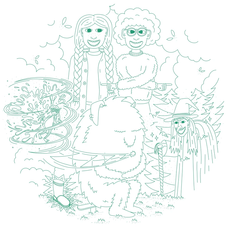 Her tager I med drengen Theo og pigen Sally på eventyr i Klosterskoven for at finde Sallys forsvundne gummistøvle. Undervejs møder I en brusende flod, en vandalf og trolde – masser af trolde.