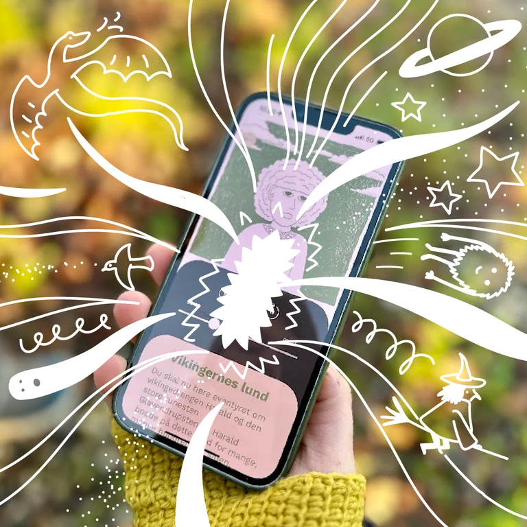 Når I har valgt et eventyr, guider appen jer ud til startpunktet. Undervejs på ruten bliver I ført gennem en historie, som folder sig ud kapitel for kapitel.